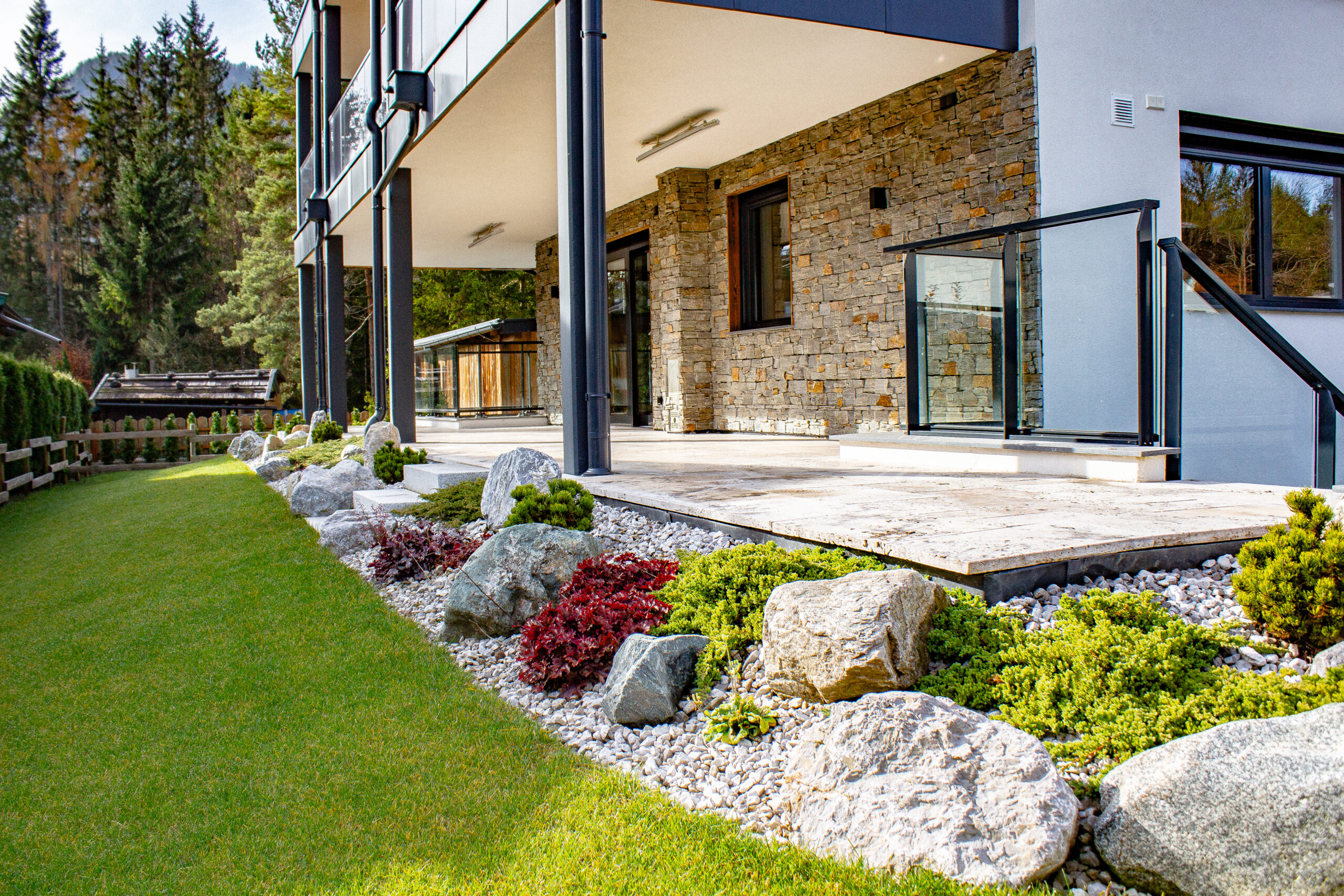 St. Ulrich am Pillersee – Top2 – Erdgeschoßwohnung über zwei Etagen – beste Massivbauweise – hochwertig ausgebaut – großzügige Sonnenterrasse – Panoramablick auf Loferer Steinberge – intelligente Raumaufteilung – gutes Preis-Leistungs-Verhältnis – WNFL beträgt 207,99 m² – EG mit Garderobe, Gästetoilette, Abstellraum, Wohn/Essbereich, Masterschlafzimmer, Masterbad – Sonnenterrasse – Gartenanteil – Carport – Abstellplatz – UG mit Abstell/Wirtschaftsräume, Wellnessbereich, Sauna, zwei Schlafzimmern mit Bad und WC extra, zwei Lichthöfe